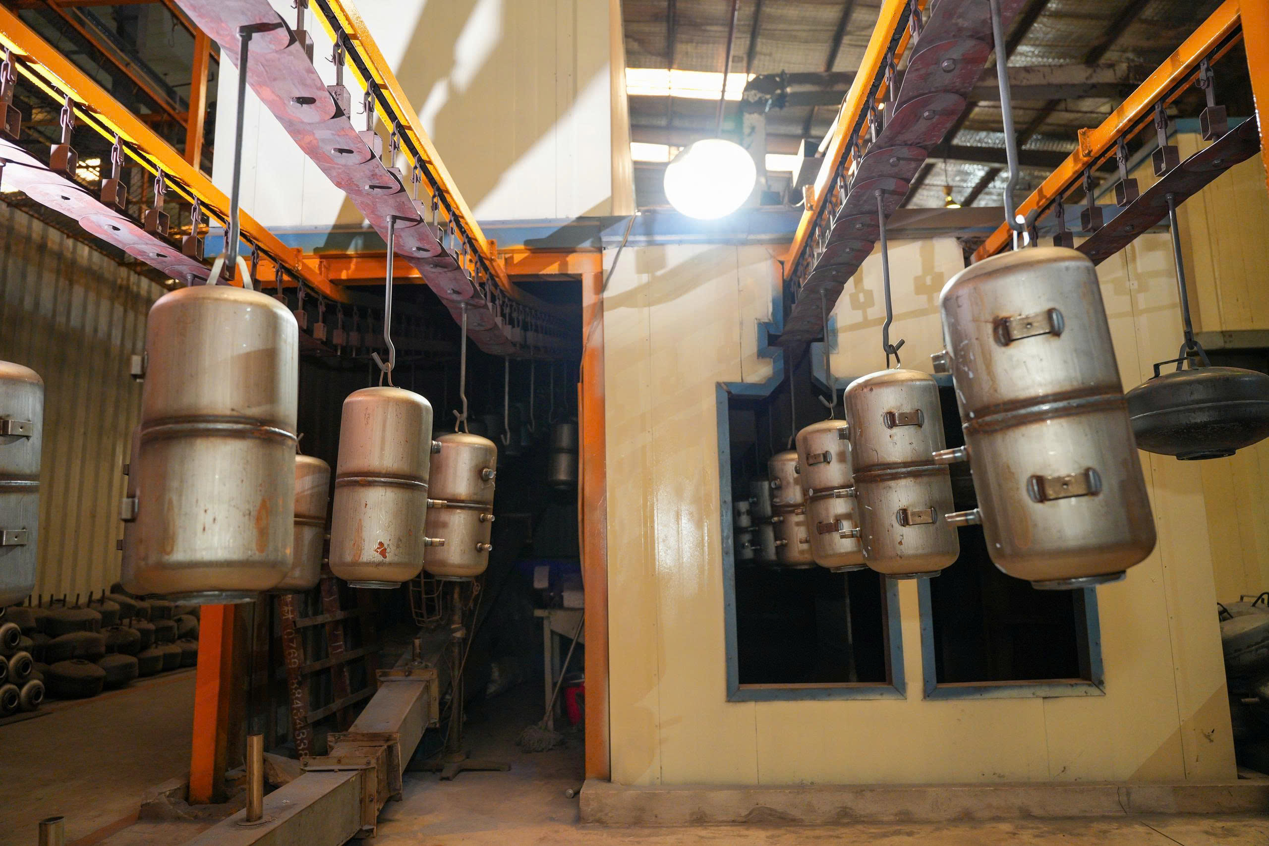Với tráng men ướt, dung dịch men ở dạng lỏng có khả năng lan tỏa và bao phủ toàn bộ bề mặt lõi bình thông qua chuyển động quay. Nhờ đặc tính này, lớp men có thể tiếp cận cả những vị trí khó như mối hàn, góc cong hoặc cổ bình -những khu vực thường tiềm ẩn nguy cơ ăn mòn cao. Sau khi phủ, sản phẩm được sấy và nung ở nhiệt độ cao, giúp hình thành lớp men liên kết chặt với bề mặt kim loại, hạn chế tối đa các điểm hở vi mô.